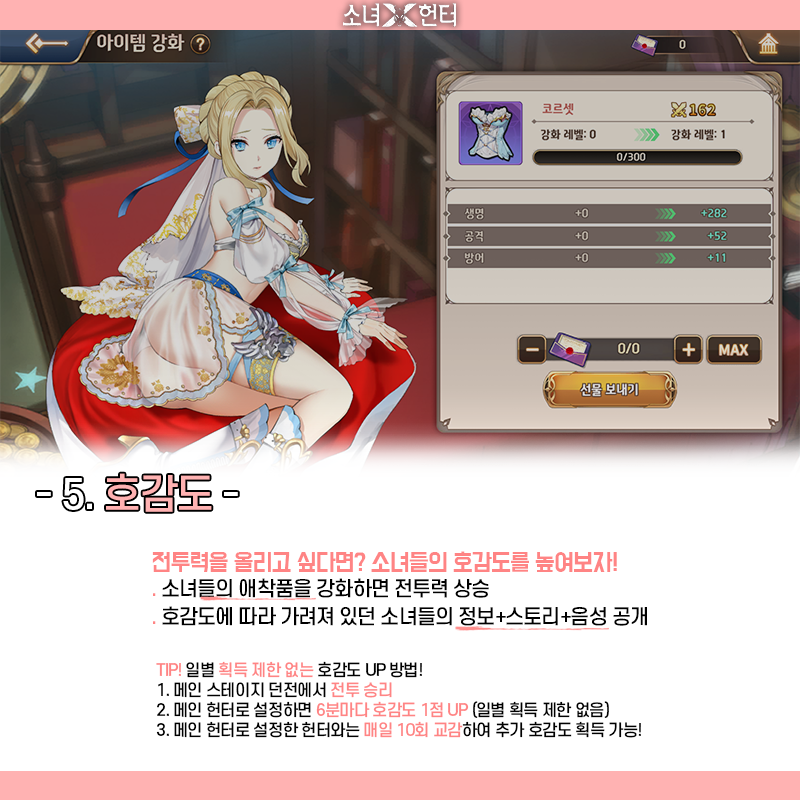 꾸쀼쀼 소녀x헌터 이제 막 시작하실 거면 작성일시 : 2021. 06. 07 (18:15) 조회 : 1,929 / 댓글 : 1 소녀x헌터 시작하실 분들은 이거 초보자 가이드 보고 시작하시는 거 추천해요이거 보고 시작하는 거랑 안 보고 시작하는 게 다르니까보면 어느 정도 도움 얻을 수 있을 거예요저도 이거 보고 더 편하게 플레이한 듯요 저는 풍덱으로 맞추고 플레이 중인데 확실히 풍덱이 밸런스가 좋긴해요혹시 덱 고민 중이신 분들은 풍덱으로 맞추는 거 추천해요소녀x헌터 캐릭터도 잘 만들어서 수집하는 재미가 있거든요 ㅎㅎ 2추천 글쓰기스크랩 신고