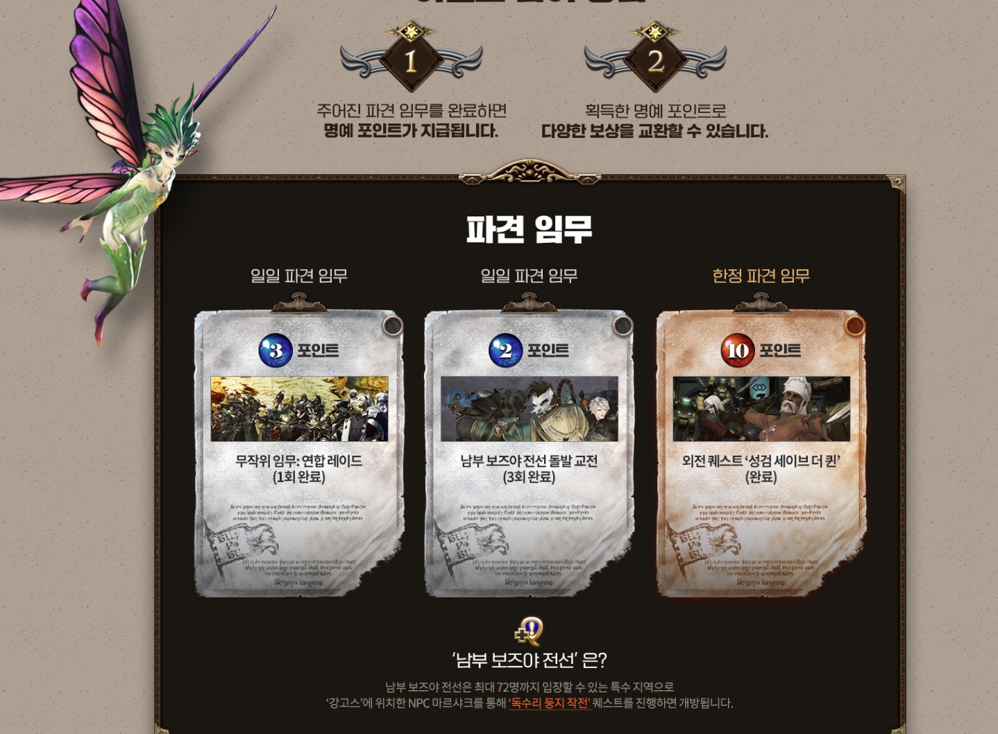 하루에 무작위 로 연합레이드나, 남부 보즈야 전선 교전, 그리고 외전퀘스트인