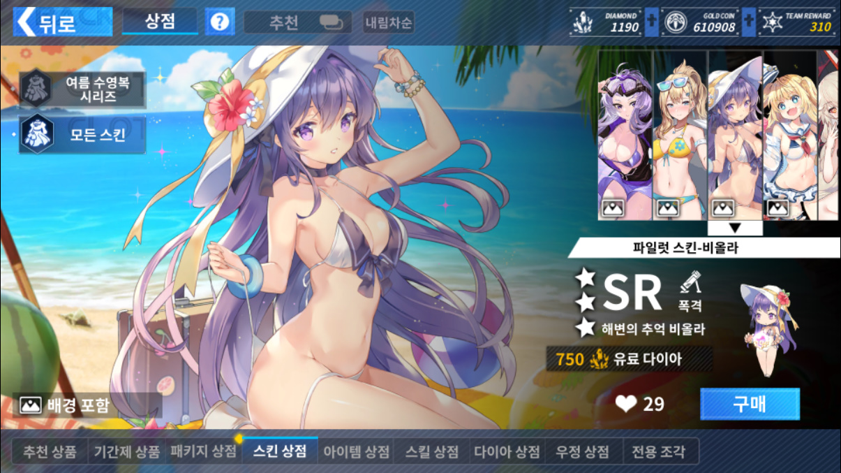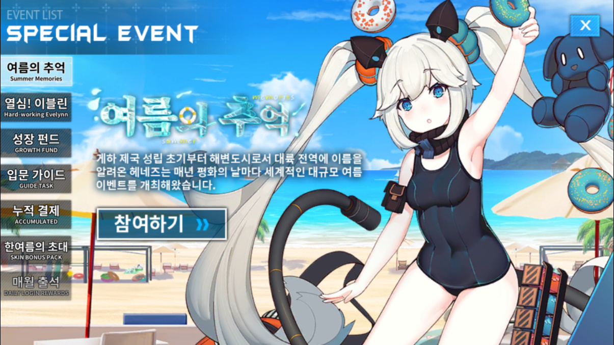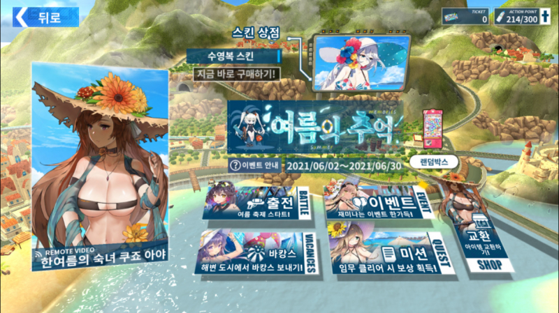 여름 이벤트 구성은 스테이지 전투 출전이랑 미션, 스킨 뭐 이렇게 있어요