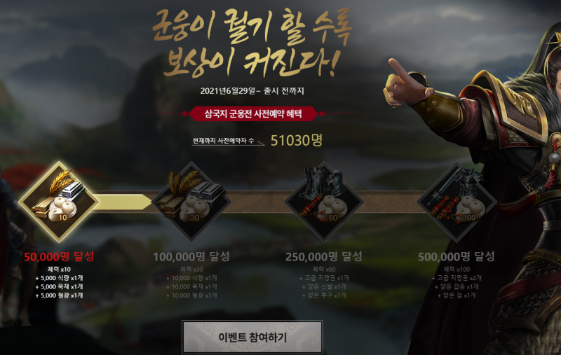 삼국지군웅전 사전예약 이벤트
