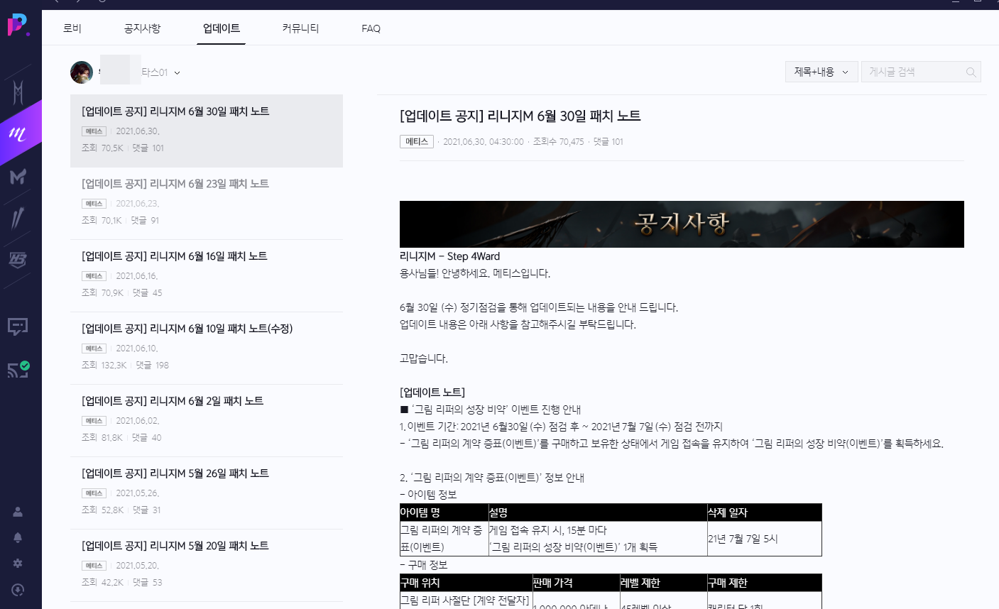 펜펜토 퍼플에서 리니지M하고 있어요 작성일시 : 2021. 07. 06 (09:42) 조회 : 1,109 / 댓글 : 1 리니지M 복귀하면서 퍼플 사용하고 있습니다.공지사항부터 커뮤니티. 따로 토크온 기능까지 있어게임할때 정말 편한것 같아요. 오늘까지 퍼플에서 리니지M4주년 이벤트로 미니게임하고 있어요필요한 인게임 아이템도 많고 모든 카드 획득하면특별한 보상도 추가 지급해준다고 해서 열심히 했는데한 두개 빼고 다 열것같아 넘 아쉬워요.ㅠ.ㅠ 3추천 글쓰기스크랩 신고