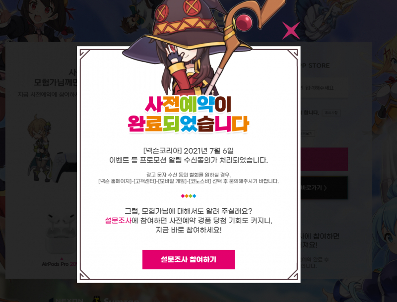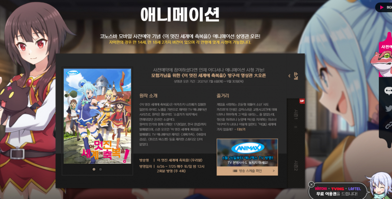 펜펜토 코노스바 모바일 사전예약시작했습니다. 작성일시 : 2021. 07. 06 (17:57) 조회 : 1,593 / 댓글 : 2 코노스바 평소에 좋아하는 애니라 모바일 게임으로 나온다는 소식듣고 기다렸는데 오늘 사전예약 시작해 바로 신청했어요 이번에 사전예약 보상으로 추첨을 통해 플스5. 에어팟프로, 구글 기프트카드도 준다고하던데플스한번 노려봐야겠습니다 ㅋㅋㅋ 공식 홈페이지에서 코노스바 애니 시청할 수 있습니다.매주4편씩 공개되고 더빙판과 자막판으로 나눠져 있어취향에 맞게 선택해 애니보시면 될 것 같아요. 4추천 글쓰기스크랩 신고