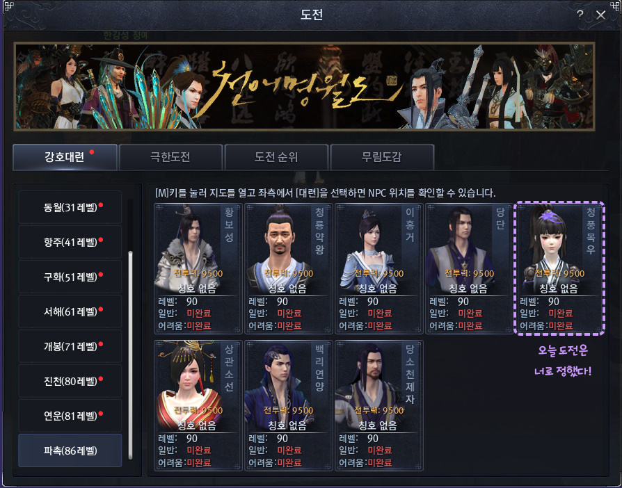 그중에서 가장 핵심인 퀘스트들로는 강호대련에 새로운 목우의 등장!
