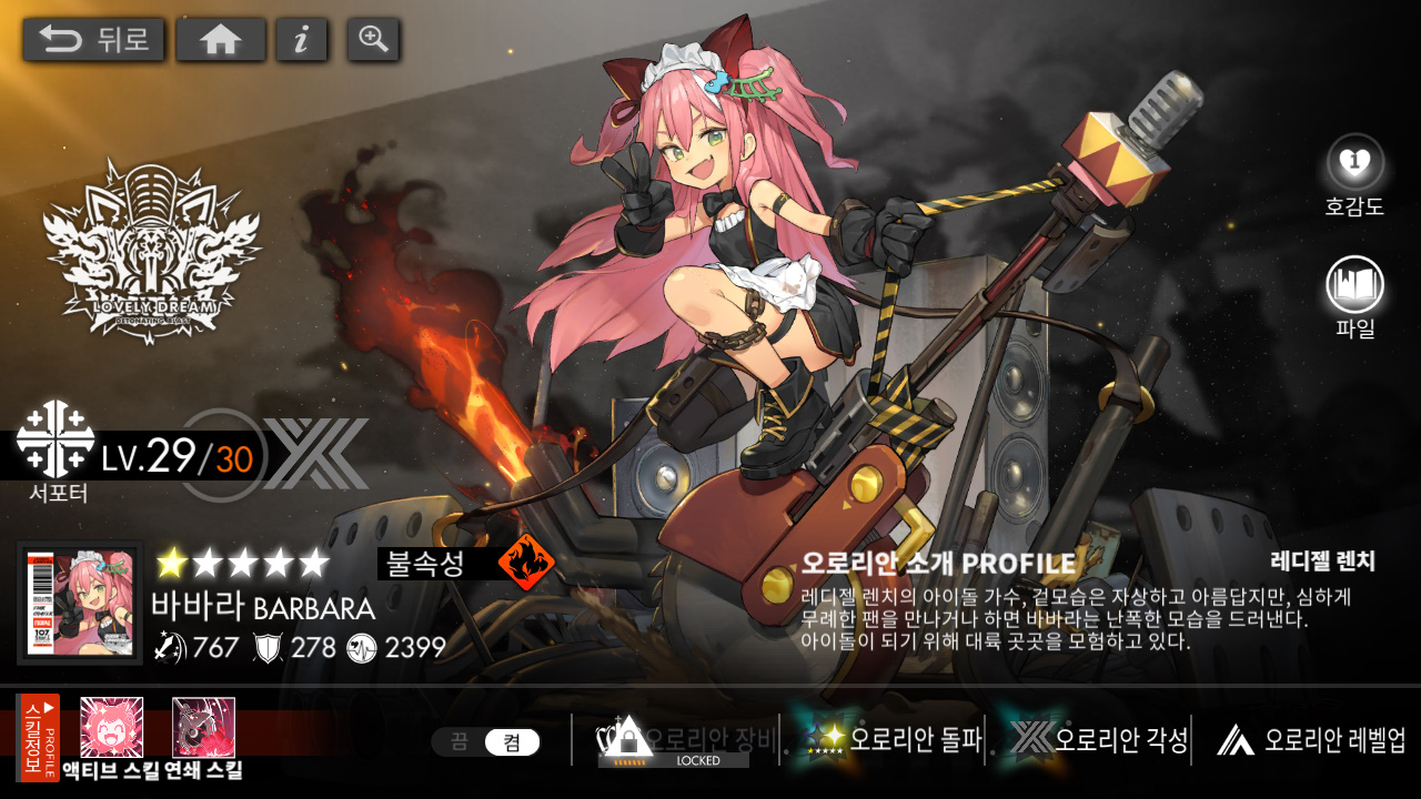 캐릭터마다 속성이 있지만 사심 담아서 키우는 제 자식 같은 바바라....