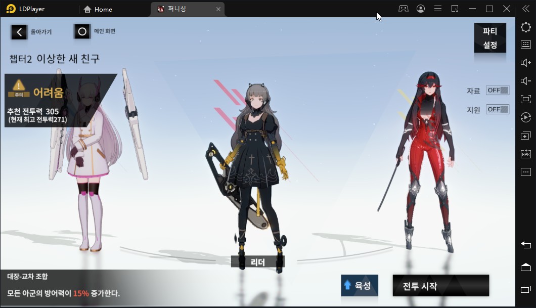 일단 이렇게 편성하고 플레이 해봤는데 게임 생각보다 잘 만들었어요