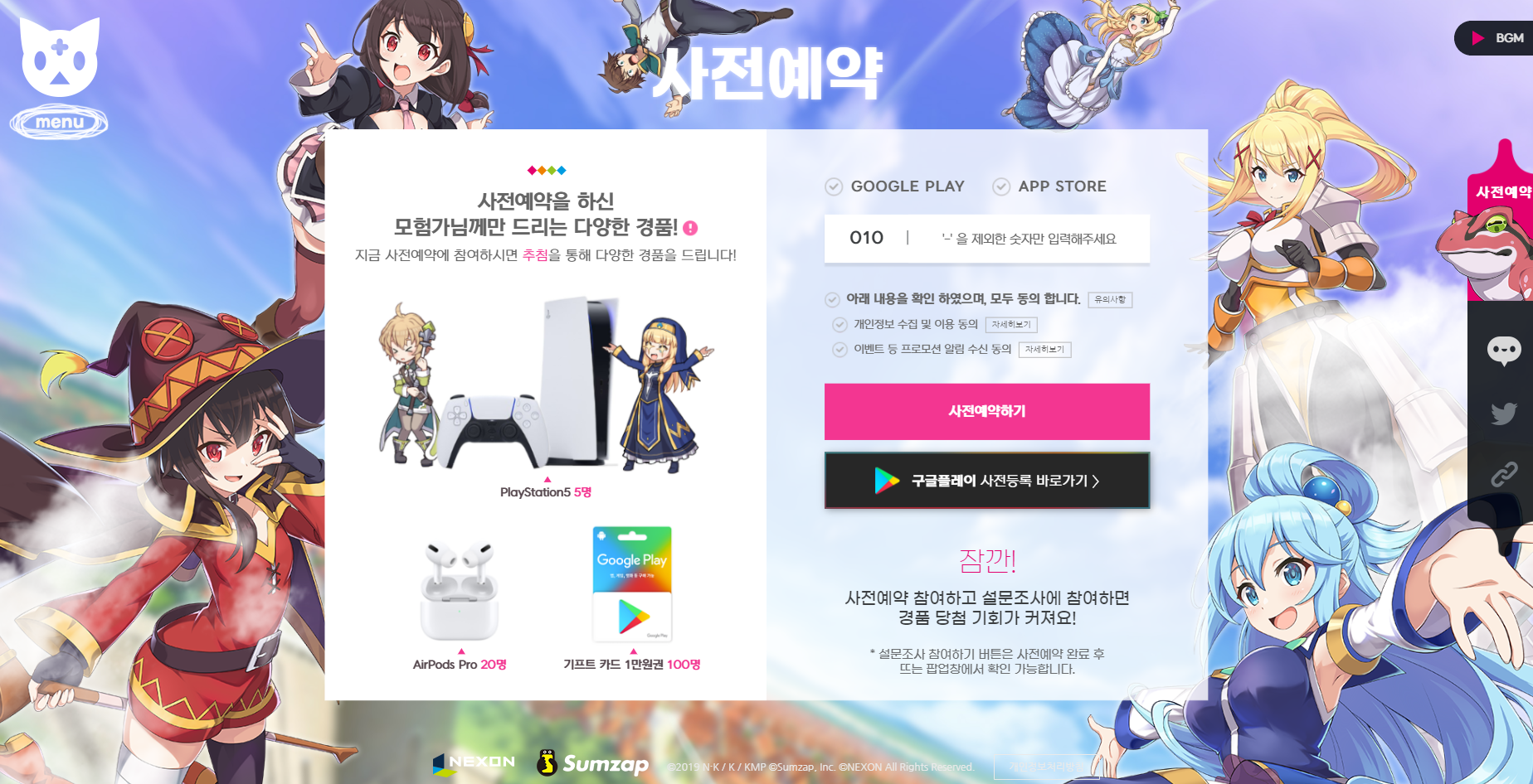 흑돼지 코노스바 모바일 지금 사전예약 중! 작성일시 : 2021. 07. 14 (13:53) 조회 : 874 / 댓글 : 1 지금 코노스바 모바일 사전예약을 진행하면플레이스테이션5를 포함한 에어팟 프로 등 푸짐한 현물 경품이벤트를 제공하고 있으니 코노스바를 좋아하는 분들이라면한번쯤 사전예약 해보셔도 좋을 듯 합니다. 카즈마와 아쿠아라는 캐릭터를 정말좋아해서 코노스바 게임도 기대하고 있는데홈페이지에서 나온것처럼 스토리가 코노스바 애니메이션과 비슷하게나온다면 재미있게 즐겨볼 수 있을 것 같아서추천드려볼만 할 듯 합니다 ㅎㅎ 3추천 글쓰기스크랩 신고