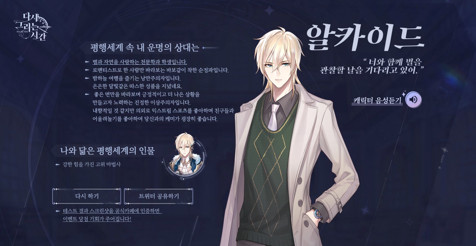 n52764627 다그시 평생세계속 내 연인 찾기 테스트? 작성일시 : 2021. 07. 19 (00:53) 조회 : 1,051 / 댓글 : 0 다시 그리는 시간 기다리면서 평행세계 속 내 연인 테스트 해봤는데생각보다 재밌네요ㅋㅋ질문도 많고 딱 성향대로 캐릭터 골라주는 느낌다른게임처럼 질문 2,3개 던져놓고 아무거나 나오는게 아니라ㅋㅋㅋ저는 알카이드 나왔는데성향이 완벽하게 일치함ㅋㅋㅋㅋ그리고 이거 인증하면 이벤트 당첨 기회도 주어진다고 하니까 참고하시길...그나저나 게임 얼른 사전예약이라도 시작했으면 좋겠는데ㅠㅠ 3추천 글쓰기스크랩 신고
