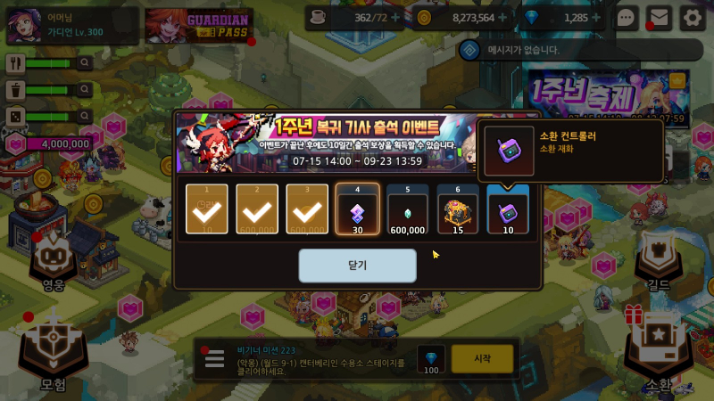 치토스 가테 1주년 이벤 빵빵함여 작성일시 : 2021. 07. 20 (16:52) 조회 : 846 / 댓글 : 1 저도 1주년이라 간만에 복귀해서 하고 있는데복귀 기념 출석으로 7일차에 소환 컨트롤러 10개도 주고 이렇게 기간내 최대 100회 무료 소환을 줍니다. 저는 간만에 복귀해서 메이릴이 없었는데이번에 무료뽑 돌려서 메이릴 뽑은 ㅋㅋㅋㅋㅋ제가 약간 바리맘에 지속덱을 좀 사랑해서메이릴 열심히 키워야겠군요 3추천 글쓰기스크랩 신고