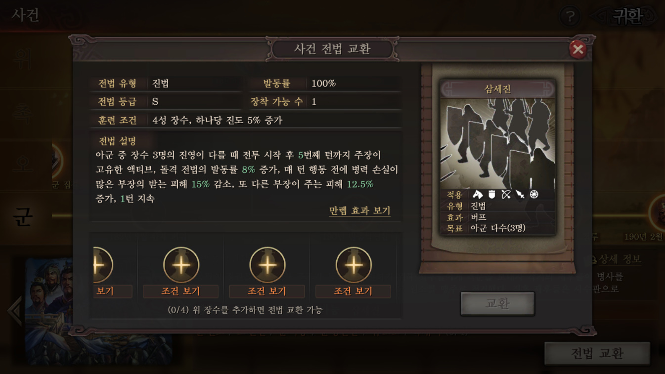 특이하게 능력을 받으려면 장수 진영이 모두 달라야 하더라고요?
