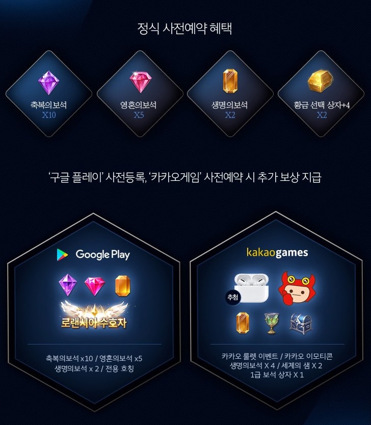 별도로 구글플레이랑 카카오게임 사전예약까지하면 추가보상도 지급하는데