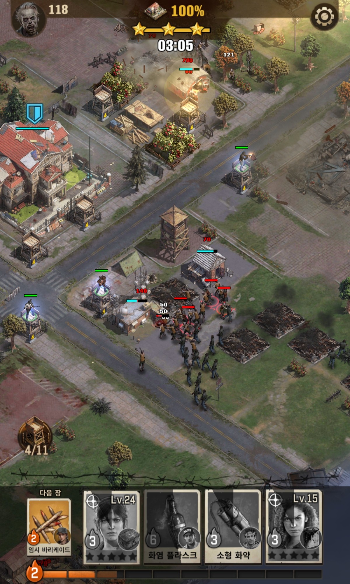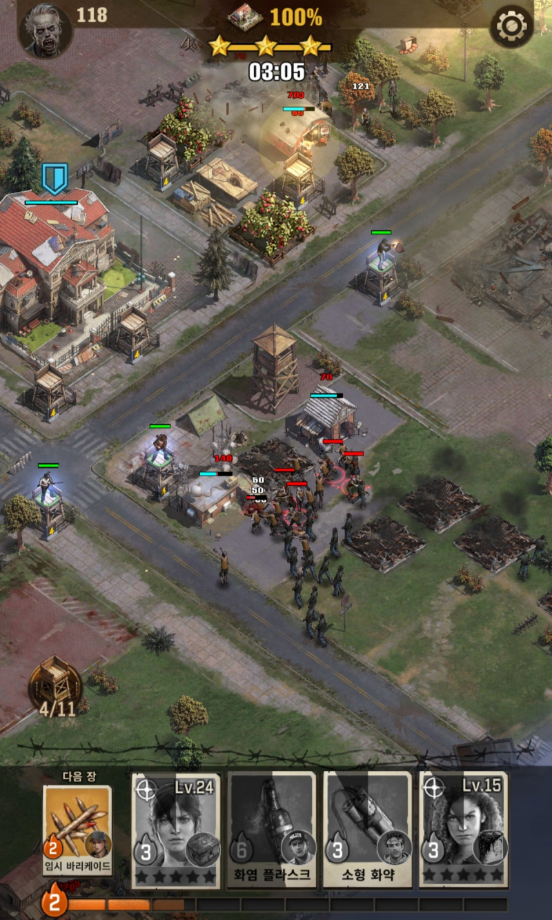 영지 안에 들어온 좀비를 처치하는 건데 스킬 좋은 캐릭터 위주로