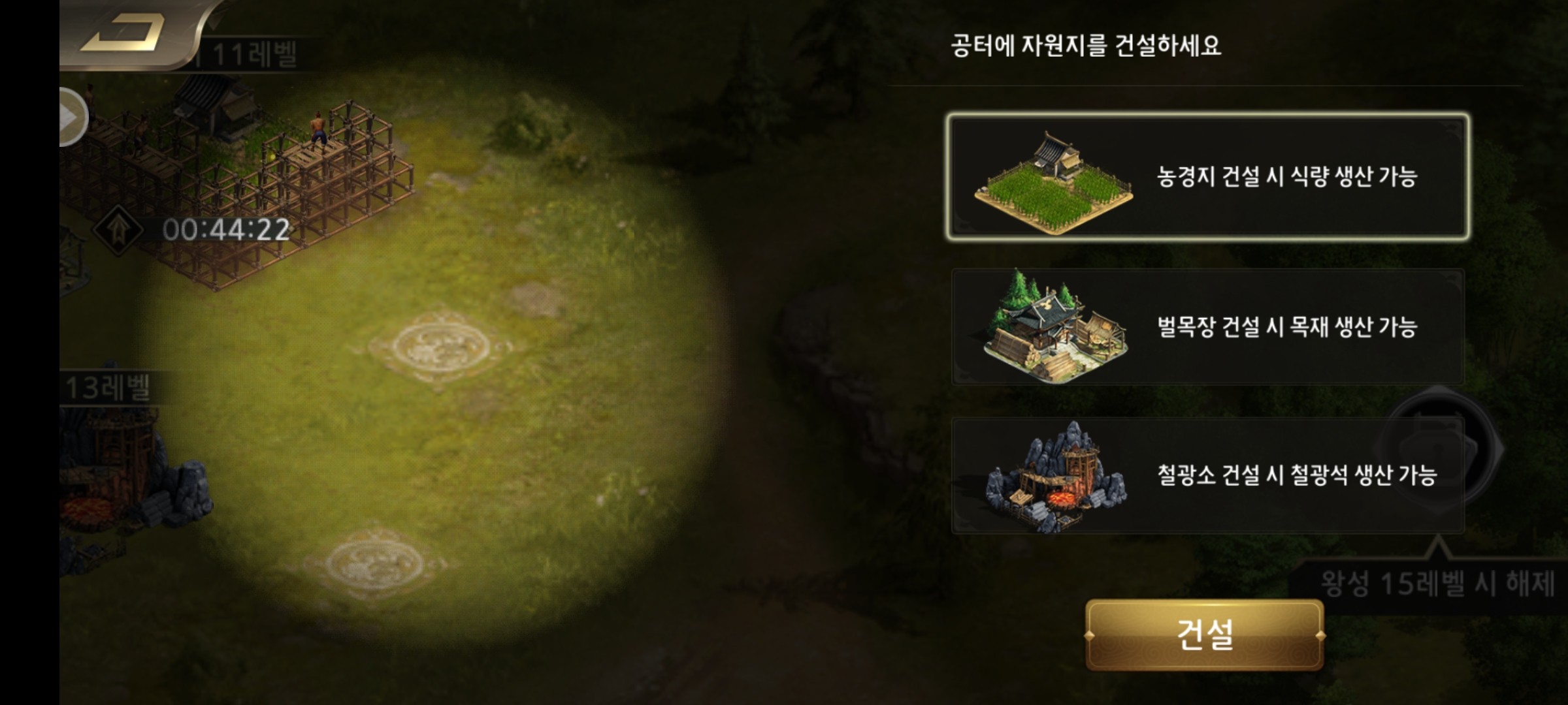 자원을 채취하는 곳은 벌목장, 농경지, 철광소 이렇게 3곳입니다.