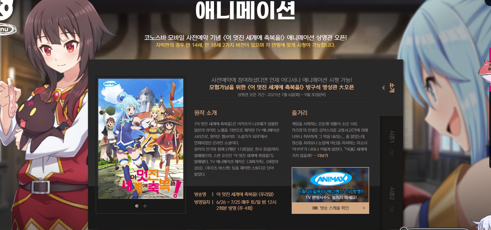 흑돼지 코노스바 모바일 오픈 2일전!!! 작성일시 : 2021. 08. 17 (16:30) 조회 : 631 / 댓글 : 0 코노스바 모바일이 이제 2일밖에 남지 않았습니다.8월19일 정식오픈이라고 해서 저도 엄청 기다리고 있는데코노스바 제 최애 애니인 만큼 이번에 오픈하자마자 바로 플레이 해보려고 해요 ㅎㅎ 지금 사전예약을 아직 받고 있는데PS5와 에어팟 프로를 받을 수 있는 이번 이벤트를 놓치지 마시길! 여기에 지금 코노스바 공식 홈페이지를 방문하면 애니메이션을무료로 볼 수 있어요. 더빙판도 있어서 간만에 더빙판 정주행 가야겠습니다 ㅋㅋㅋ 3추천 글쓰기스크랩 신고