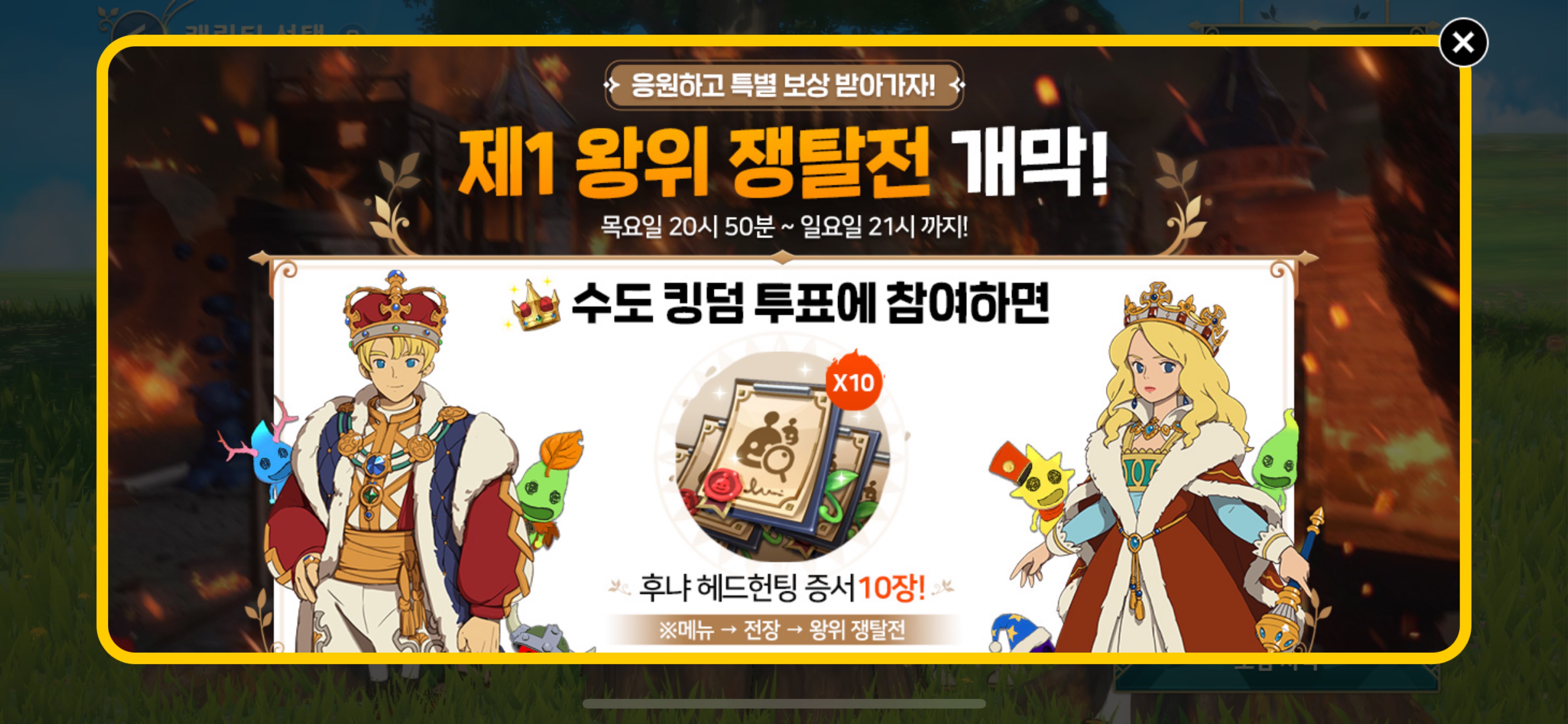 님들 오늘 제2의나라 왕위쟁탈전 시작 되는데 오후 8시 50분부터 시작 돼요