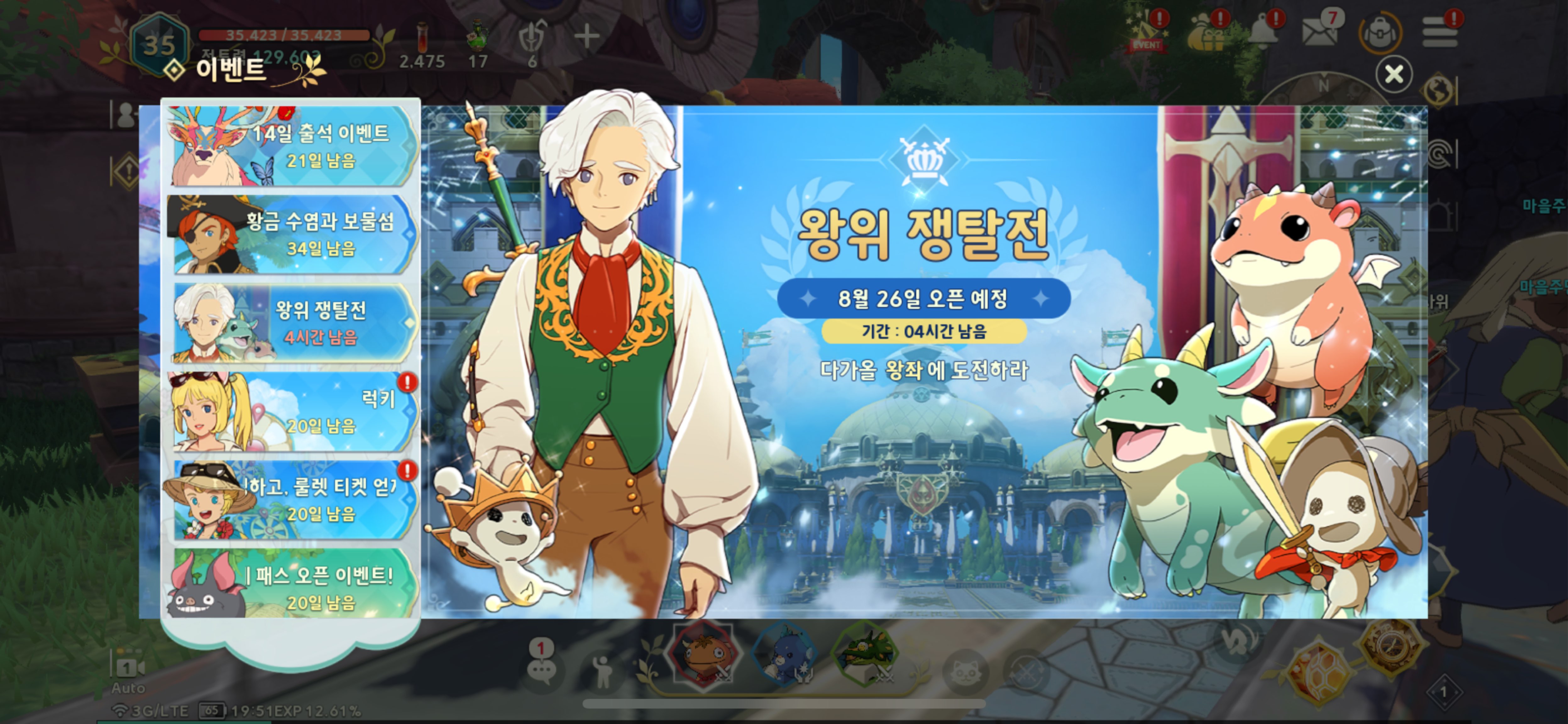 일정 보니 왕위쟁탈전 입찰을 시작으로 수도 킹덤 지정까지 있더군요