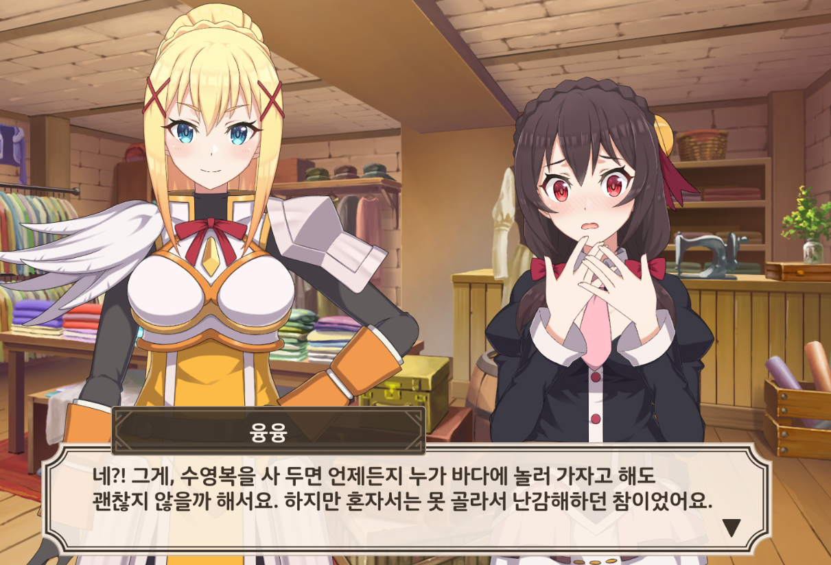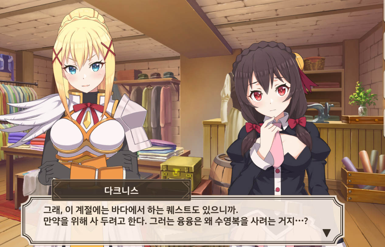 웨이 코노스바 모바일 서로 수영복 골라주느 다크니스와 융융! 작성일시 : 2021. 08. 31 (16:58) 조회 : 1,327 / 댓글 : 0 코노스바 모바일 바캉스 파트2 스토리보고 있는데둘이 은근 만담하면서 서로 잘 어울리는 수영복 골라주는데넘 커엽 ㅋㅋㅋ 중간 깨알 포인트... 메구밍 디스까지. ㅋㅋㅋㅋ 5추천 글쓰기스크랩 신고