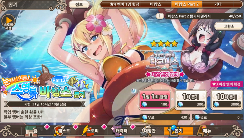 펜펜토 코노스바 모바일 다크니스만 나오면 돼요~ 작성일시 : 2021. 09. 01 (18:44) 조회 : 958 / 댓글 : 0 코노스바 모바일 바캉스 캐릭터 융융 줍줍했습니다 이번 파트2 바캉스보면서 융유 갖고싶었는데이렇게 바로 나올줄이야~ ㅋㅋ이제 다크니스만 획득하면 수영복 바캉스 컬렉션 완성이예요! 쿼츠 모으기위해서 스테이지 돌고 있습니다.아직 픽업기간 21일 남아있으니 그동안 열심히 쿼츠모아다크니스도 데리고 와야겠어요! 5추천 글쓰기스크랩 신고