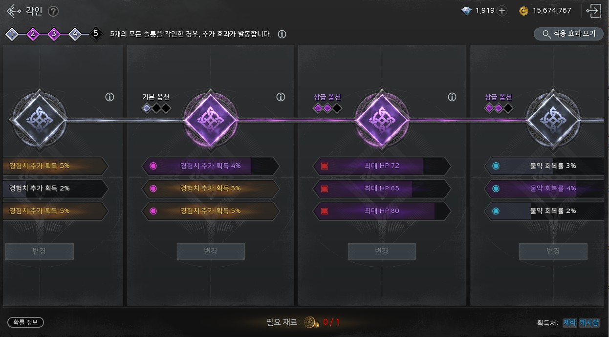 4등급이랑 5등급이 좀 마음에 안들어서 각인도장 더 모아서 다시 돌려보려구요!