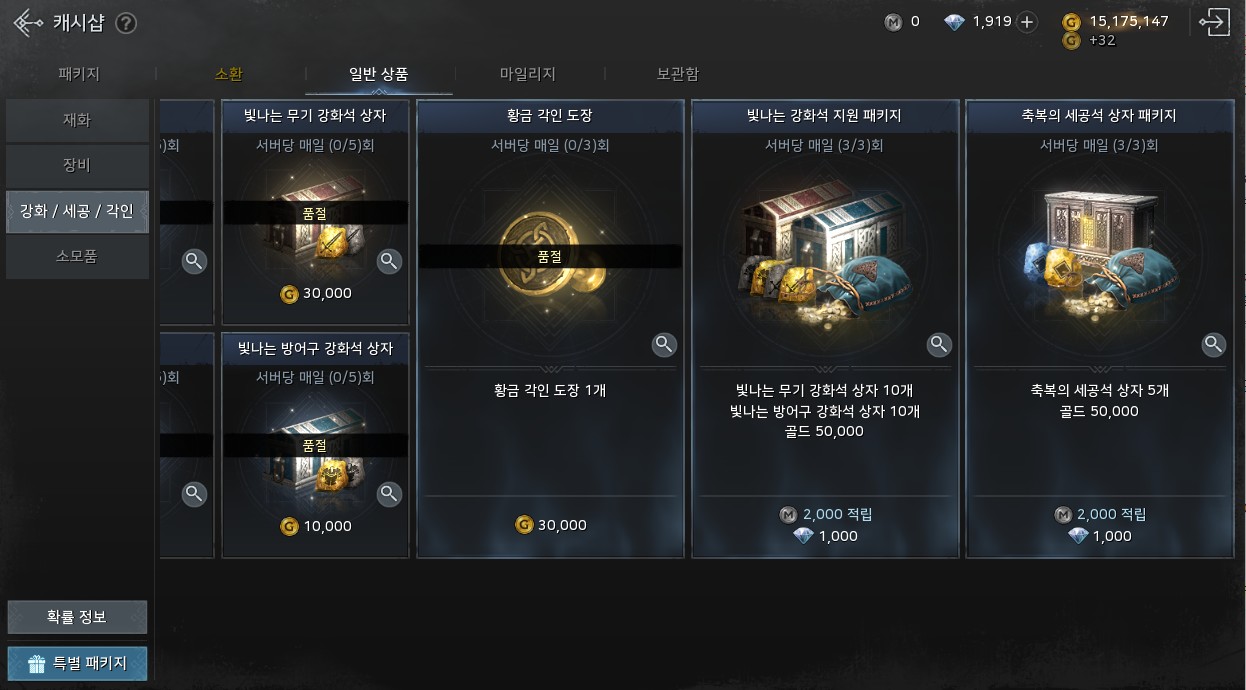 상점에서 3개씩 살 수 있는 각인도장 야금야금 모아놨다가