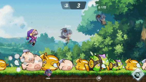 이건 피코피코라는 길드배틀인데요 귀여운 돼지들을 밞거나 튕기면