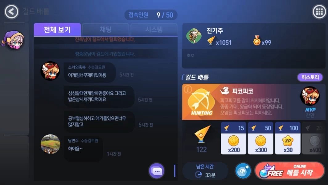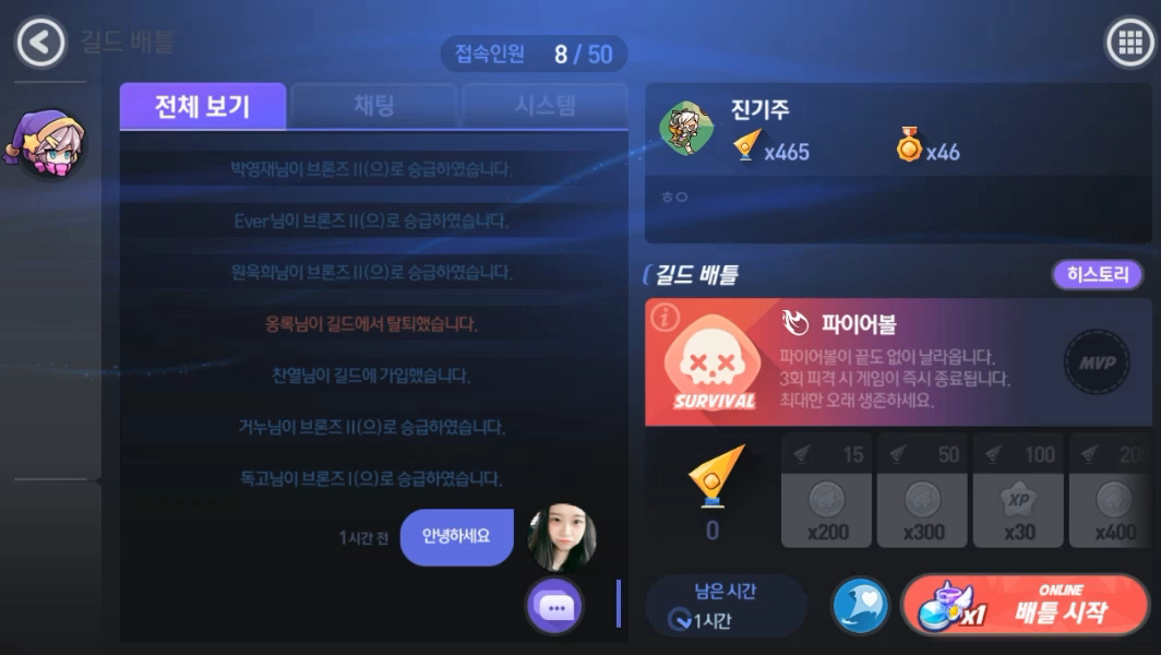 이렇게 요즘 실시간으로 유저들이랑 길드배틀을 즐기는게 재미있는데요.