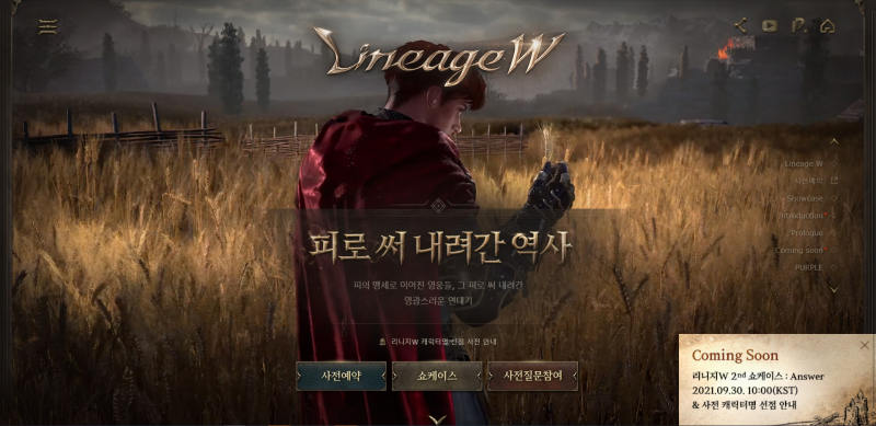 리니지w 사전 예약 하려고 들어가니 두번째 쇼케이스 얘기가 있더군요