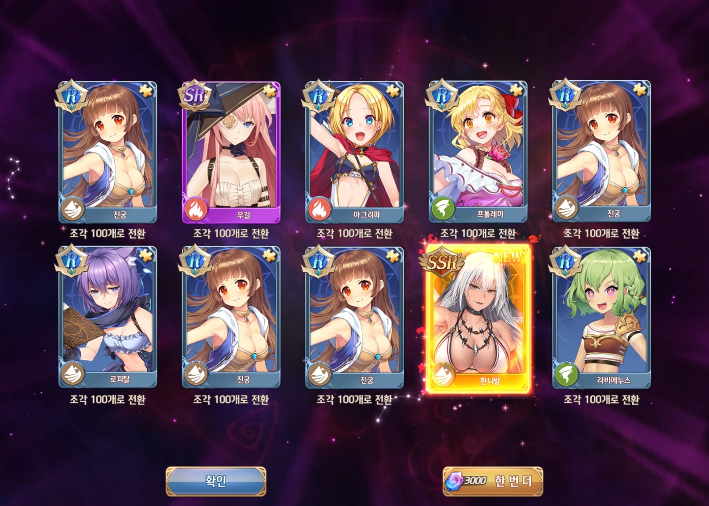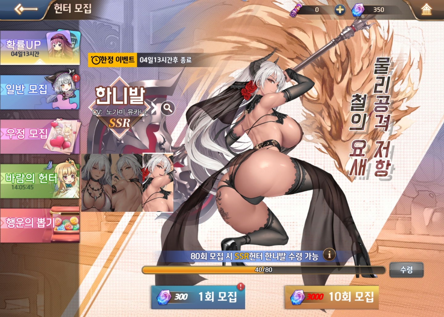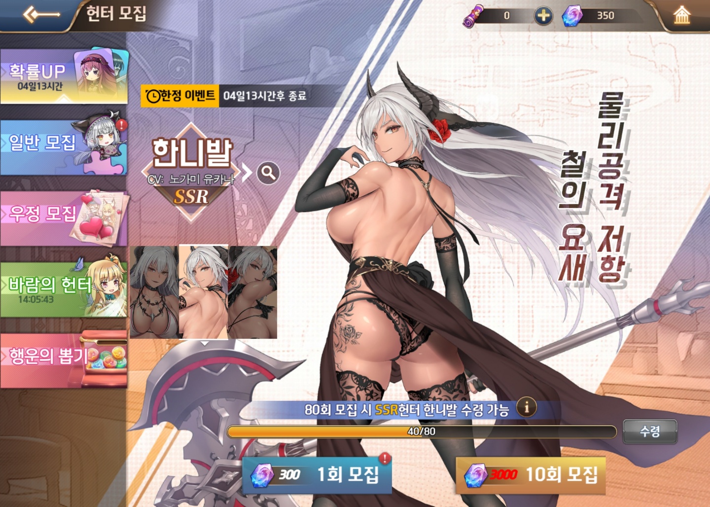 온나나나나나낰 [주의] 누가봐도 대놓고 노린 캐릭터 작성일시 : 2021. 10. 06 (15:57) 조회 : 599 / 댓글 : 0 소녀X헌터 이번에 아나운서 김나정이 오늘 6시 30분에 유튜브 채널에서방송한다고 해서 오랜만에 들어가봤는데 이번에 나온 신캐 ㅗㅜㅑ결국 참지 못하고 바로 뽑아버림 ㅋㅋㅋㅋ20뽑해서 나왔는데 이정도면 ㅅㅌㅊ? 3추천 글쓰기스크랩 신고
