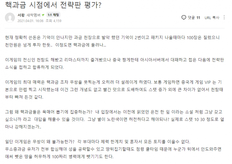 공식카페에 어떤 과금러가 올린 삼국지 전략판 장점인데,