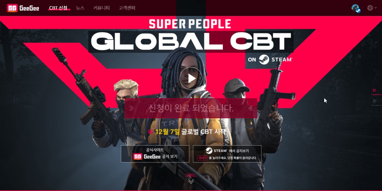 치토스 슈퍼피플 CBT 신청했어요 작성일시 : 2021. 11. 18 (17:31) 조회 : 601 / 댓글 : 1 12월 7일 글로벌 CBT 시작이라길래한번 해보고 싶어서 부랴부랴 스팀 로그인하고설문조사 참여하고 CBT 신청하고 왔습니다.유튜브 영상들 좀 찾아보니 잼써 보이든디 ㅋㅋㅋ 1추천 글쓰기스크랩 신고