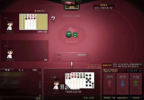 카톡 하이로우 신경전 너무 빡세당... 작성일시 : 2021. 11. 19 (10:43) 조회 : 520 / 댓글 : 1 윈조이 하이로우 하는 중입니다!이게 3장이나 덮고 4장을 보고 판단을 해야하니까사실 상대가 2 5 6 9인 거보고 8탑이면 동률일 수도 있겠다... 했었거든요근데 10 9 가 숨겨져있었어요 ㅋㅋㅋㅋㅋㅋ상대가 하이였으면 나눠가졌을텐데 로우해줘서 ㄱㅇㄷ한 끗 차이는 아니고 두 끗 차이로 이겼습니당 1추천 글쓰기스크랩 신고