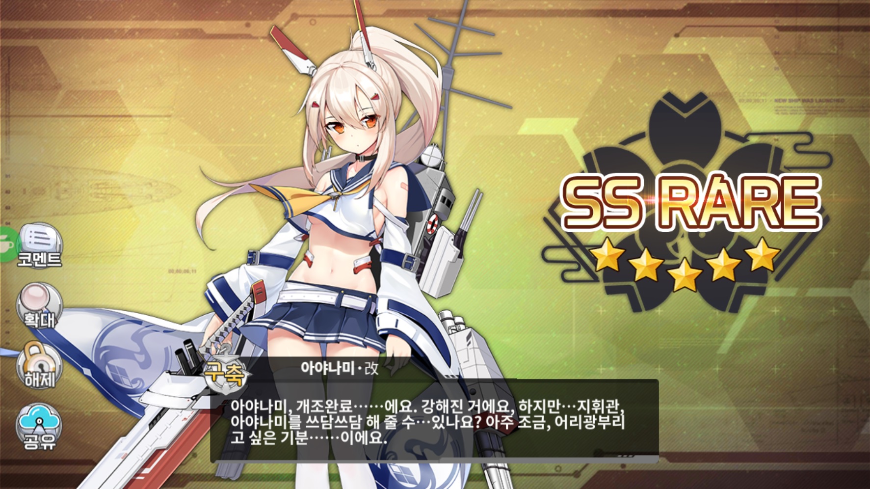 유희 벽람) 아야나미 개장했어요! 작성일시 : 2018. 06. 15 (12:36) 조회 : 2,416 / 댓글 : 2 재료 모아둔걸로어제 퇴근하고 개장해봤습니다. 유다치보다 더강해지더군요!!! 9추천 글쓰기스크랩 신고