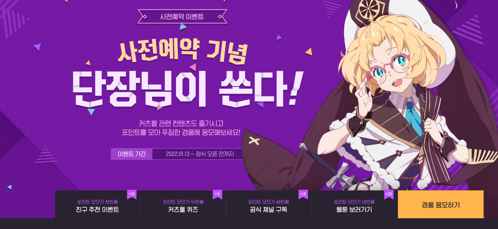 다양한 이벤트를 참여해놓을 수 있도록 준비를 해놨어요.