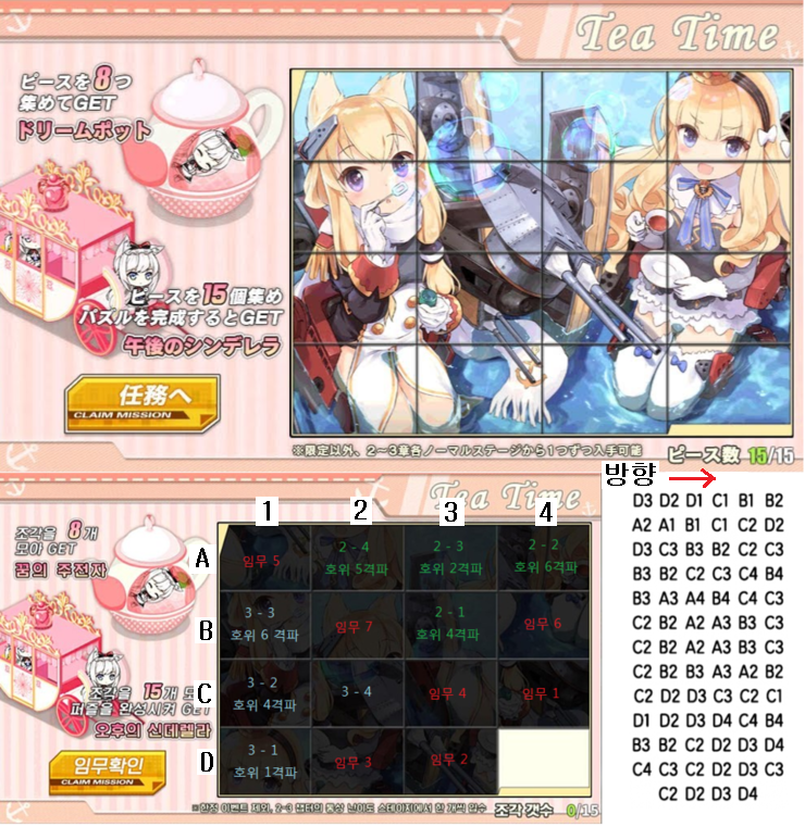 유희 벽람) 이번 다과회 퍼즐 순서 작성일시 : 2018. 06. 15 (18:43) 조회 : 2,519 / 댓글 : 5 이 이상의 자세한 설명은 생략한다. 출처(링크) : http://cafe.naver.com/azurlanekorea/182397 6추천 글쓰기스크랩 신고