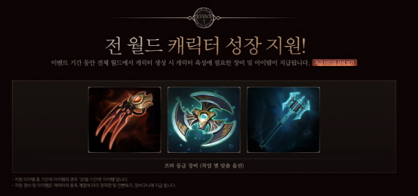 먼저 전월드 캐릭터 성장지원이 있는데