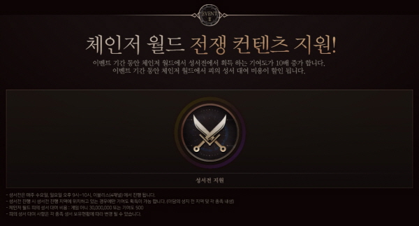 이벤트 기간 동안 성서전에서 획득하는 기여도가 10배로 늘어난다고 하네요~