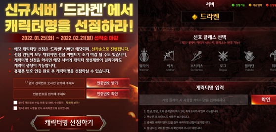 신규 서버 드라켄의 경우 캐릭터명 선점을 현재 진행 중인데 꼭 참여해보세요