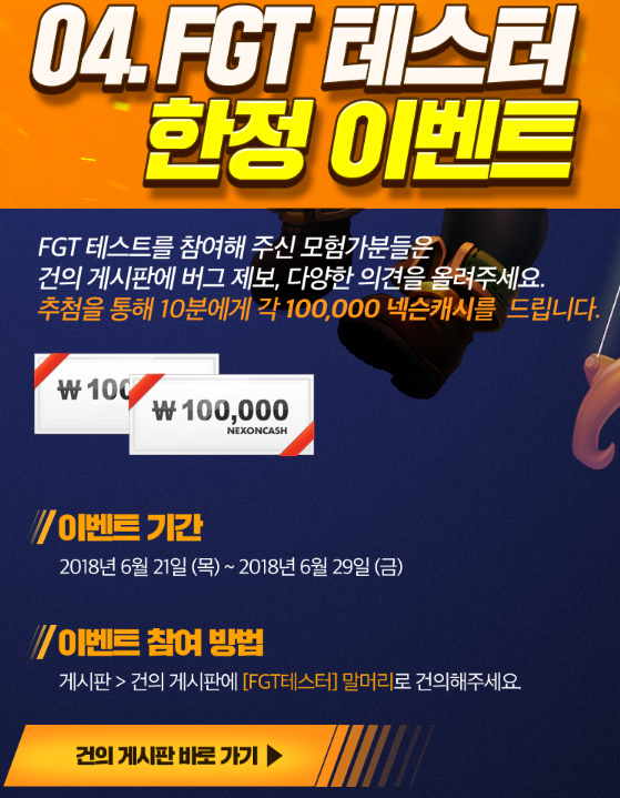 신청은 17일날 끝났는데 신청하신분들은 참여 한다면 10명을 뽑아서 10만원 상당의 넥슨캐쉬를 준다고하니