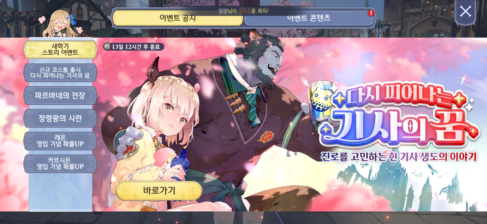 꾸쀼쀼 그랑사가 업뎃 됐어요 작성일시 : 2022. 03. 24 (15:56) 조회 : 686 / 댓글 : 1 님들 그랑사가 업데이트 되고 신규 코스튬 나왔어요다시 피어나는 기사의 꿈이라고 새학기 맞이해서 나온 것 같더라고요솔직히 교복은 나오면 무조건 사는 거 아닌가요 ㅋㅋ큐이랑 세리아드 새 옷 입혀줘서 신남..ㅋ 다시 피어나는 기사의 꿈 이벤트 던전도 생겼어요이벤트 던전에서는 최대 즐거운 꽃놀이 아티팩트 획득 가능해서 이거 운만 좋으면 아티팩트 얻어갈 수 있으니 참여해보세요 1추천 글쓰기스크랩 신고