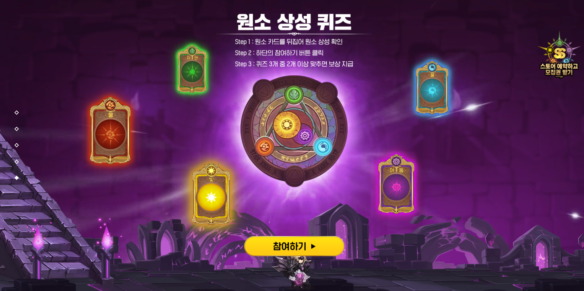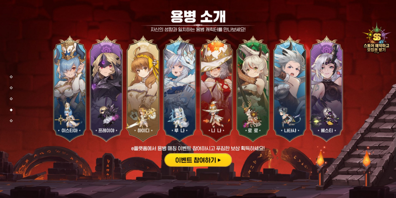 이거 외에도 초대 이벤트나 용병 매칭 이벤트, 원소 상성 퀴즈 이벤트