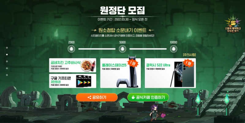 일단 5천명 달성하면 플스5고 만명 달성하면 갤럭시 S22 울트라던데
