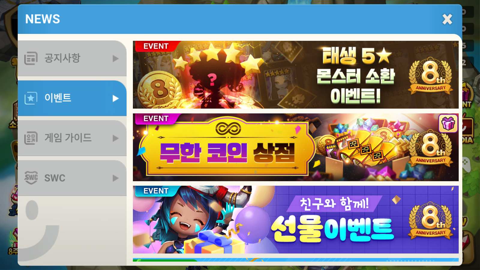 모바일 게임 시장에서 장수하기가 참 힘든데, 서머너즈 워는 어느덧 8주년을 맞이했다고 합니다.