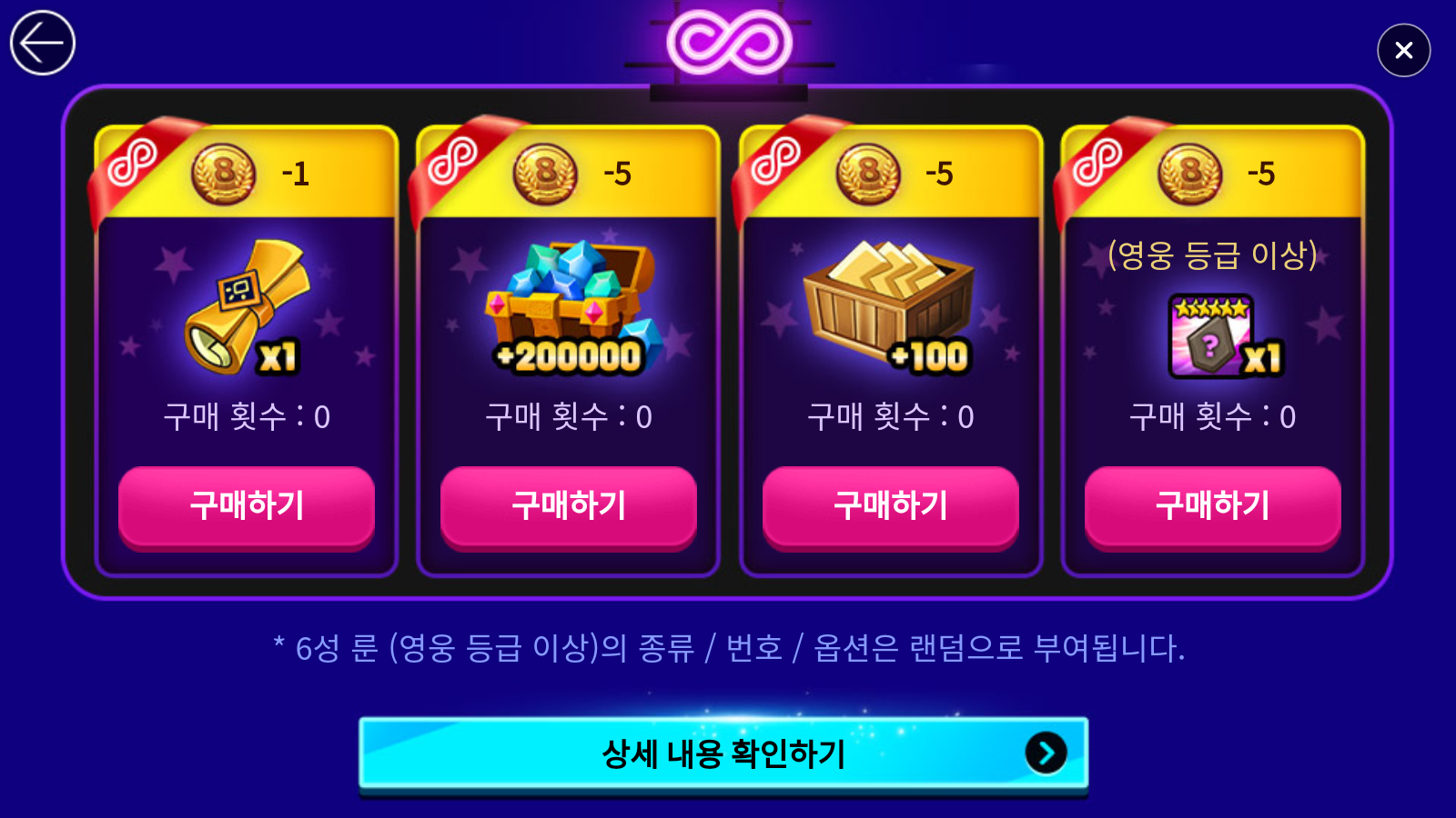 신비의 소환서, 마나석, 에너지, 6성 룬은 무한대로 구입할 수 있고,