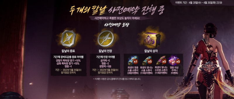 꾸쀼쀼 블소2 사전 예약 오늘까지예요 작성일시 : 2022. 04. 26 (16:33) 조회 : 662 / 댓글 : 1 블소2 드디어 내일 두개의 칼날 업데이트예요사전 예약 오늘까지만 가능해서 저도 뒤늦게라도 사전 예약 해뒀는데이번 사전 예약 보상이 좋은 편이라서 사전 예약은 해두는 게 좋음요 제 7의 무기인 신규 무기 비수도 나오기 때문에 이번 블소2 업데이트는 더더욱 기다려지는 것 같아요 ㅋㅋㅋ일단 칼날의 상자 구성이 너무 좋은 편이라서 내일 업뎃 벌써 기대됩니다요 2추천 글쓰기스크랩 신고