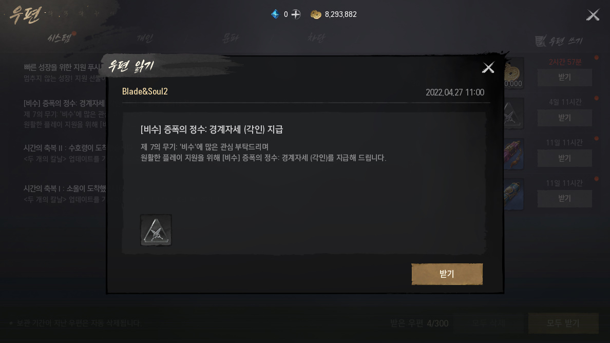 사쿠라땅 블소2 업뎃 보상 좋군요 작성일시 : 2022. 04. 29 (17:34) 조회 : 642 / 댓글 : 0 블레이드앤소울2 이번에 두개의 칼날 업데이트 되면서 복귀했어요거의 두달만에 복귀하는 느낌이긴 한데 ㅋㅋㅋ두개의 칼날 업뎃 되고 7번째 무기 비수 새로 나와서 궁금하더라고요우편함 보니까 비수 증폭의 정수 경계자세 각인 줬고소울, 수호령 소환권도 주고 있어서 개이득이다 싶었음요 복귀할 거면 지금 복귀하는 게 나을 듯요 3추천 글쓰기스크랩 신고
