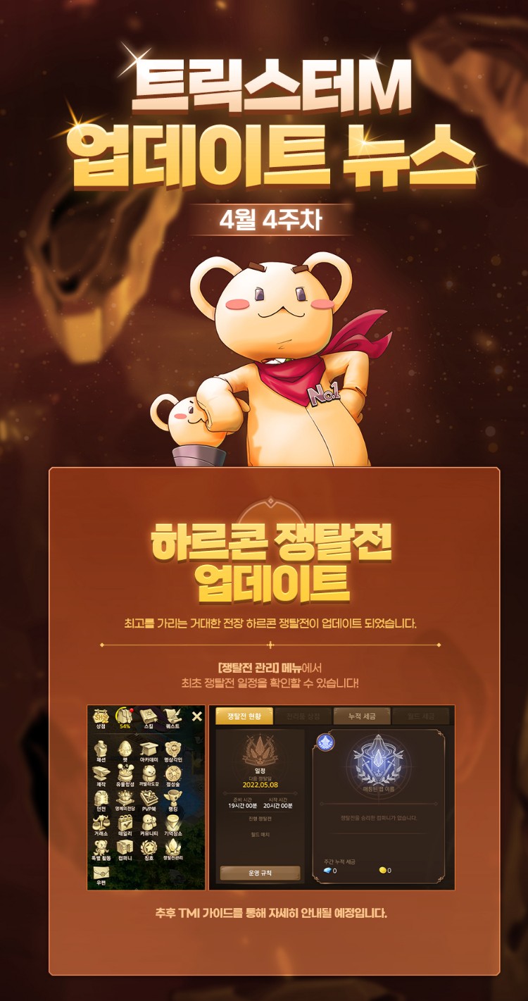 냥펀치 트릭스터M 이번에 1주년 티저 페이지 보는데 작성일시 : 2022. 05. 03 (00:52) 조회 : 522 / 댓글 : 0 트릭스터M 이번에 1주년이라고 티저 페이지 오픈했던데이거 보고 있으니까그래도 은근 1년동안 이것저것 열일했네요 1년동안 진행됐던 에피소드 내용이랑 보스, 던전 컨텐츠 업데이트 된거나이런것들 정리해놓고 한번에 볼 수 있게 해놨던데요런식으로 정리된거 보니까 확실히 보기도 편하고 괜찮은듯 어쨌든 조만간 하르콘 쟁탈전도 업데이트 된다고 하고신규 마나석이나 이런것들도 업데이트 됐고여러모로 요즘 열일하는 느낌이던데그래서 그런지 사람도 꽤 많아진듯ㅋㅋㅋㅋ 2추천 글쓰기스크랩 신고
