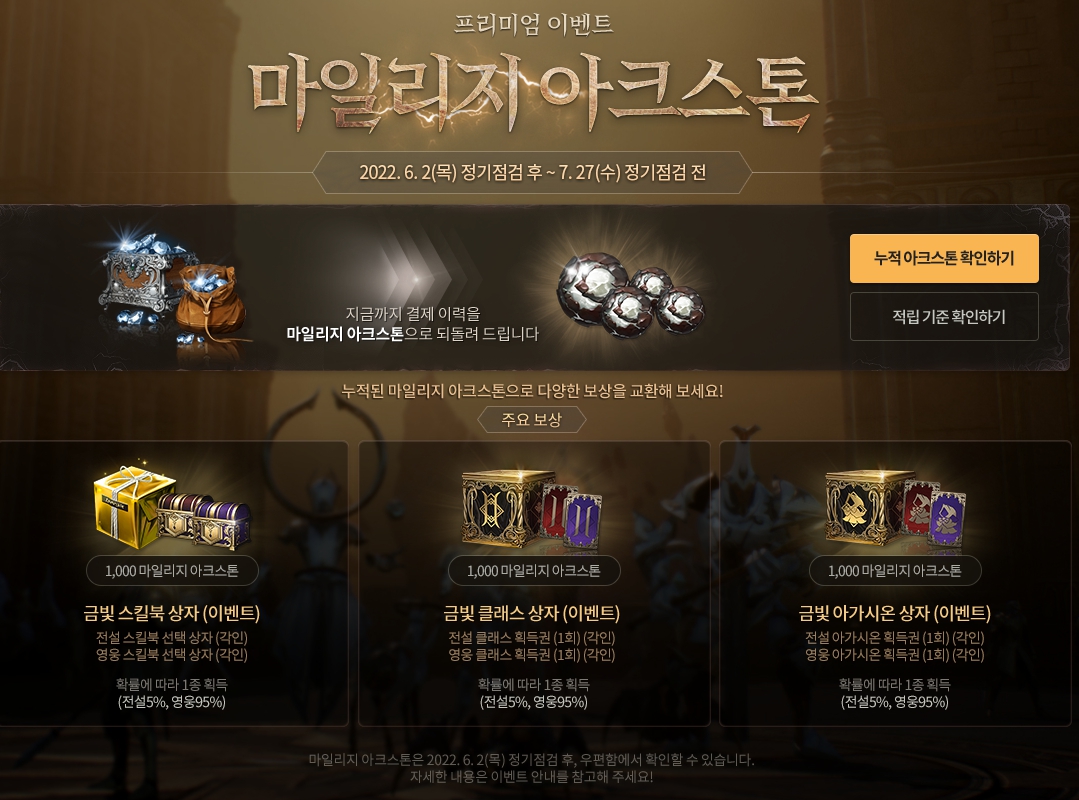 이벤트 재화인 마일리지 아크스톤으로 돌려준다는 겁니다
