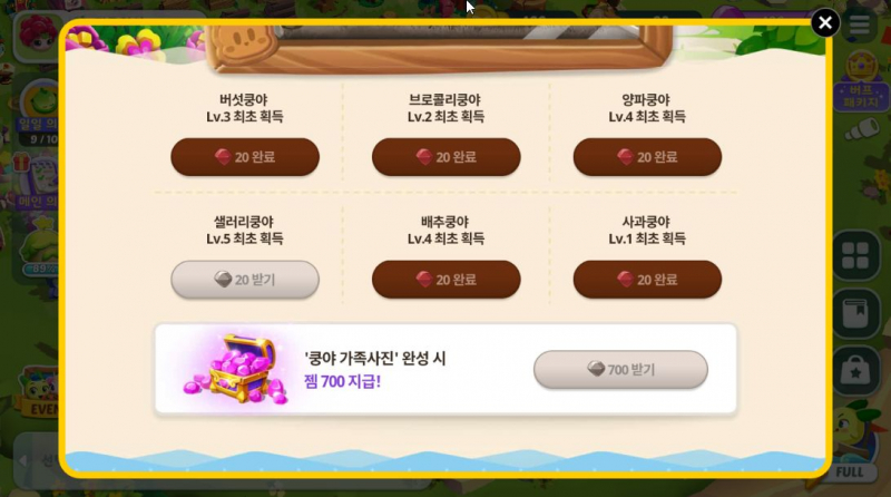 전부 완성시키면 700 젬도 주니까 꼭 해야하는 것.....