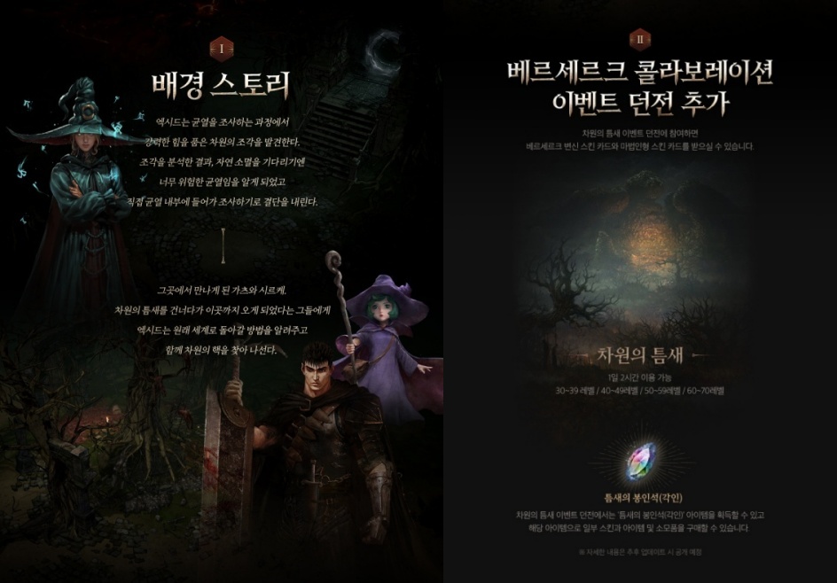 코지마마코 리니지w 베르세르크 7월 6일입니다 작성일시 : 2022. 06. 30 (19:44) 조회 : 478 / 댓글 : 0 리니지w 베르세르크 콜라보 공지 올라왔어요솔직히 베르세르크 콜라보 존버하고 있던 유저들 많은 걸로 아는데이번에 올라와서 존버는 승리한다는 걸 이렇게 증명합니다 ㅎㅎ 배경 스토리도 올라오고 베르세르크 콜라보 이벤트 던전 추가 내용도 올라왔어요차원의 틈새 이벤트 던전에 참여하면 베르세르크 변신 카드랑마법인형 스킨 카드 받을 수 있다고 해서 이거 업데이트 되면 바로 해볼 생각 ㅋ업뎃은 7월 6일에 된다고 하니까 참고요 1추천 글쓰기스크랩 신고