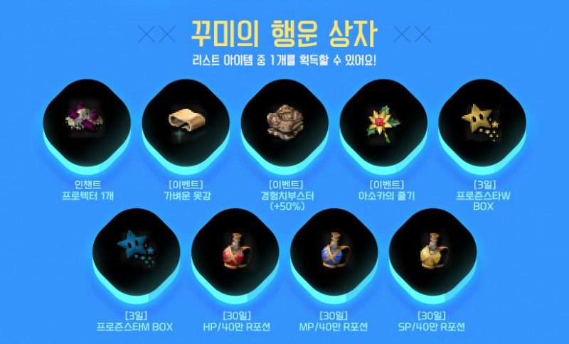 꾸미의 행운상자 이벤트는 51레벨 이상 유저들이 참여할 수 있어 다양한 보상들을 받을 수 있고,