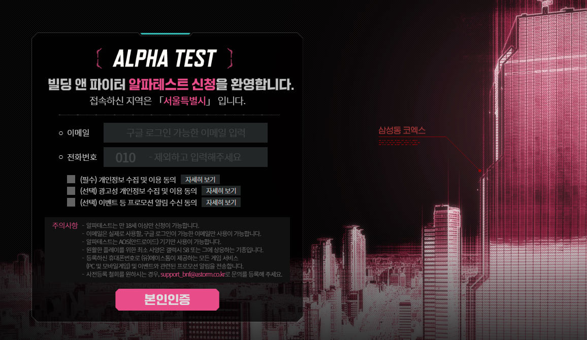 페녹시 GPS액션 빌딩 앤 파이터 알파테스터 모집중 작성일시 : 2022. 07. 08 (13:56) 조회 : 657 / 댓글 : 1 GPS액션 빌딩 앤 파이터 알파테스트 신청 받고 있는데이거 던파의 아버지라 불리는 김윤종이 만든 신작이래요그래서 그런지 액션씬도 고퀄이고 GPS연동해서 한다는게 신박해서 한번 해봐야겠어요유저들 위치가 연동되서 실제로 위치한 곳의 빌딩이나 영토를 점령하는거라는데유저들끼리 만나면 PVP도 가능하지 않을까 싶어요 ㅋㅋ알파테스트 신청은 7월 31일까지 받고 8월4일부터 10일까지 진행된다고 하니까 해보실분들은 신청해보세요 1추천 글쓰기스크랩 신고